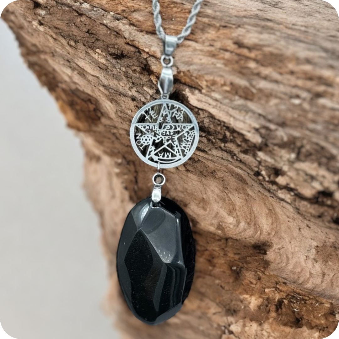 Significado: El tetragrámaton representa la protección absoluta y a obsidiana disuelve bloqueos envidias y temores ocultos.